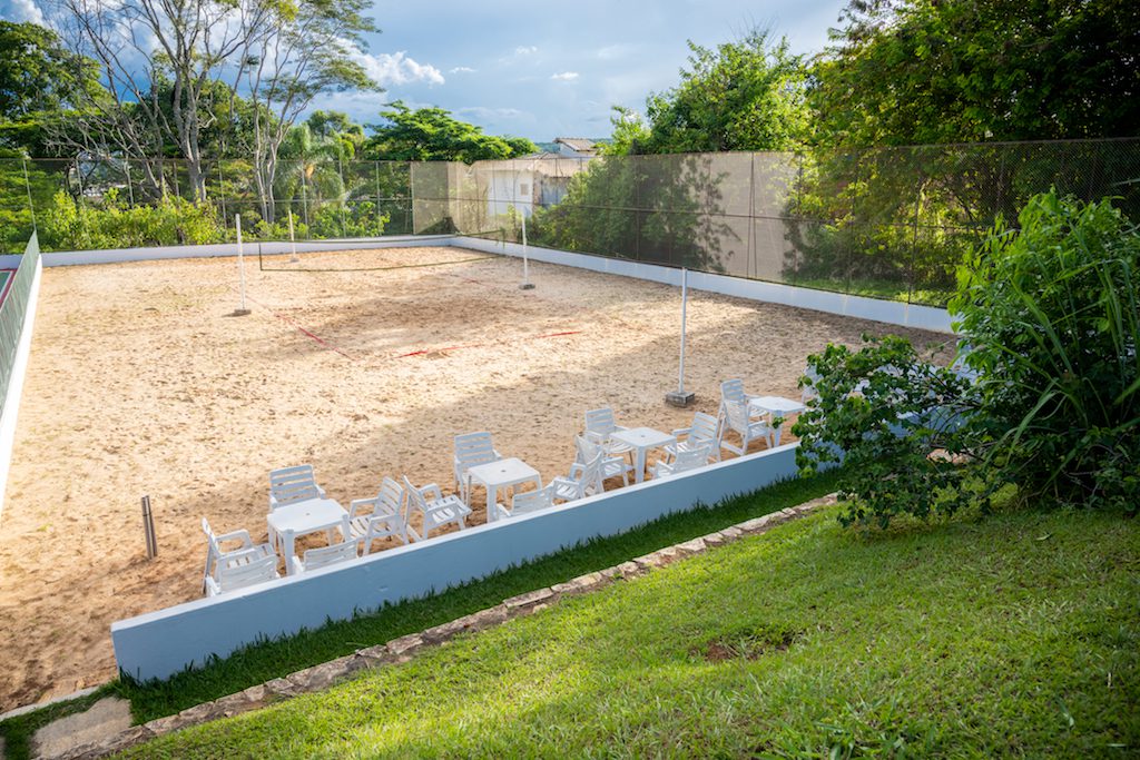 Possuímos quadras de beach tennis, futebol, futsal e tênis