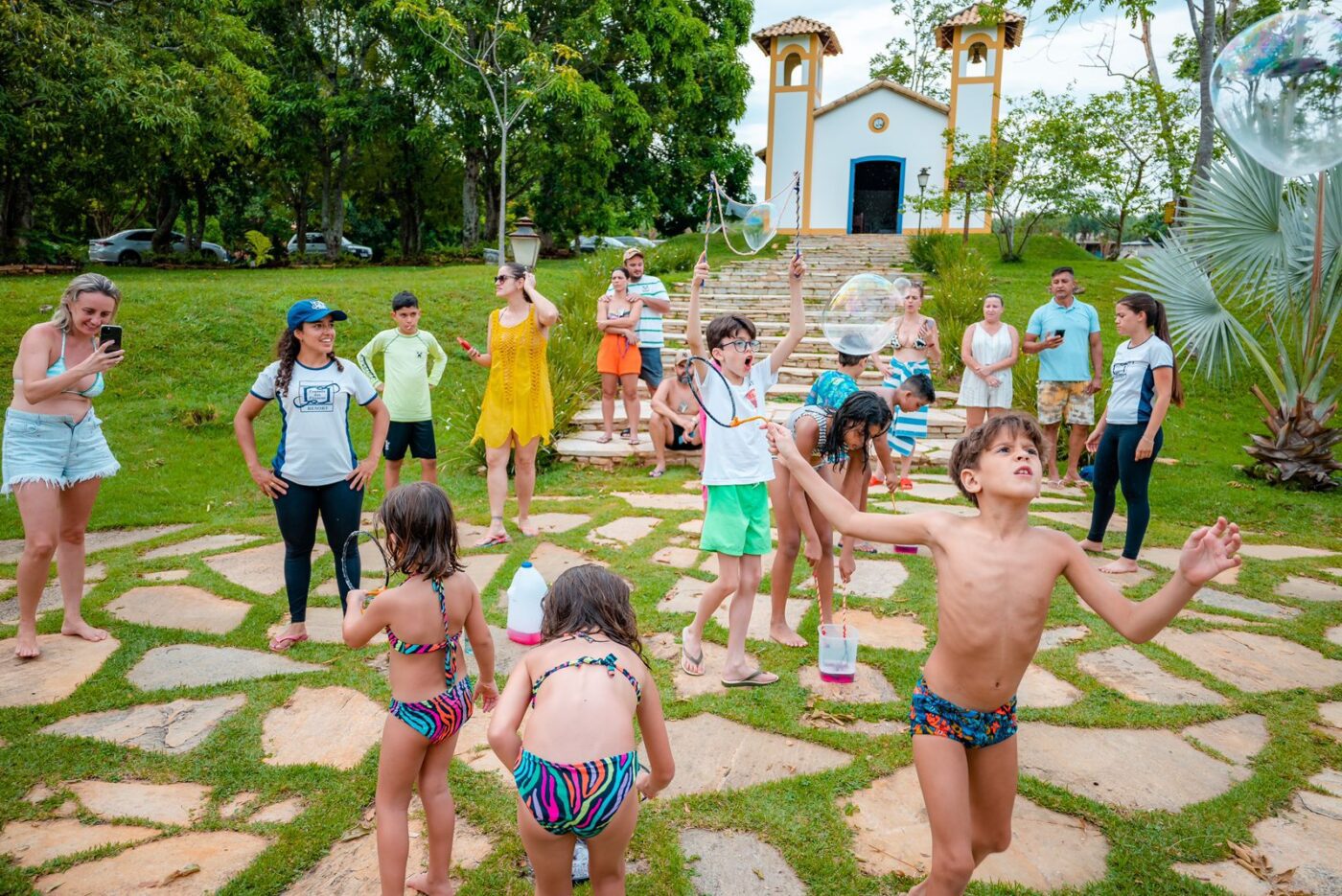 A programação inclui visita à horta, pesca esportiva, alimentar os animais da mini fazenda, brincadeiras aquáticas, jantar com os tios da recreação, atividades em quadra, passeio das lanterninhas, caça ao tesouro e muito mais!
